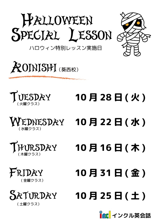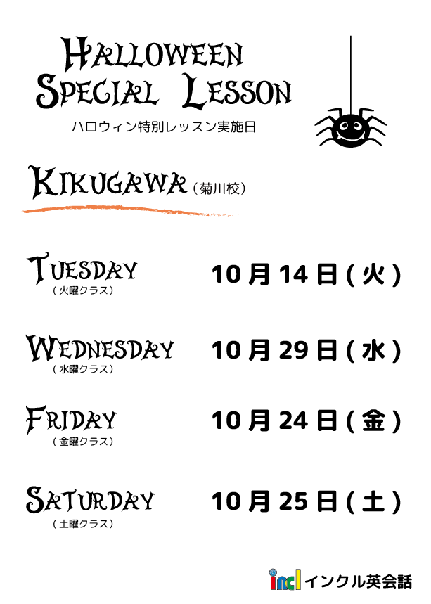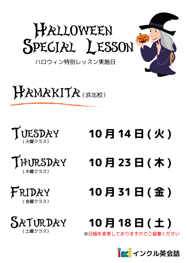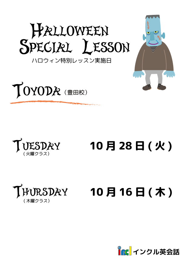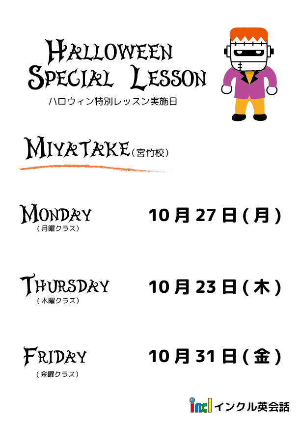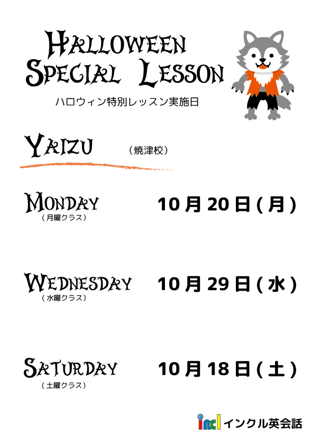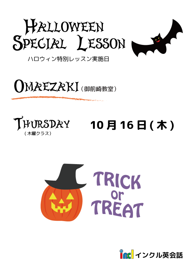 インクルでは、今年もハロウィン特別レッスンを実施します。