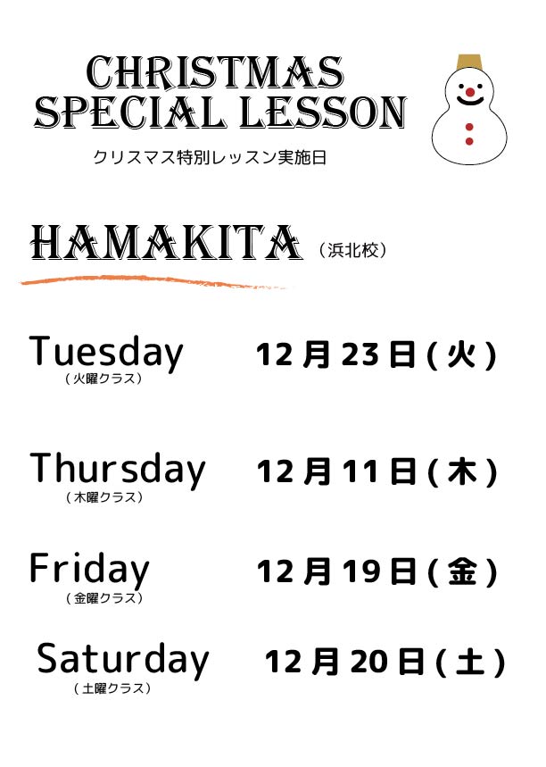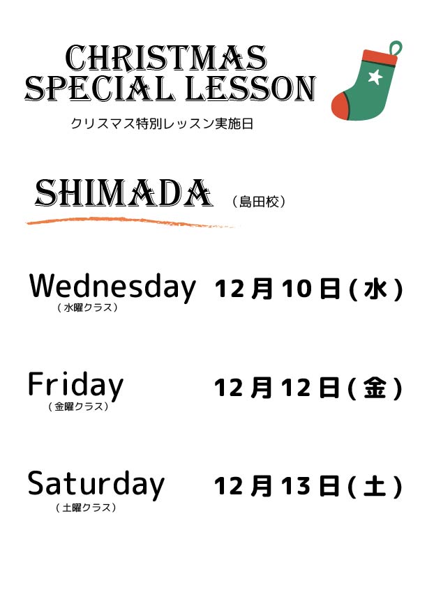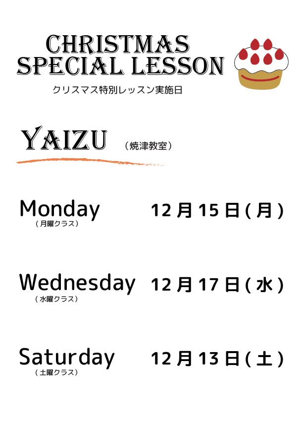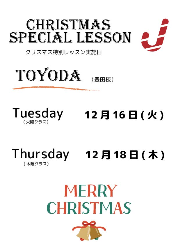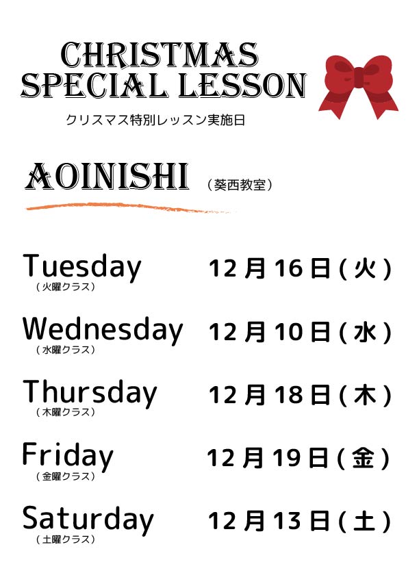 在校生以外の方にも、クリスマスレッスンに体験にお越しいただけますので、ご興味のある方は当校ウェブサイトのお問い合わせフォームよりご連絡ください。
