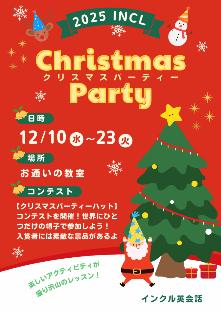(クリスマススパーティーハットコンテストは中学生クラスも対象)