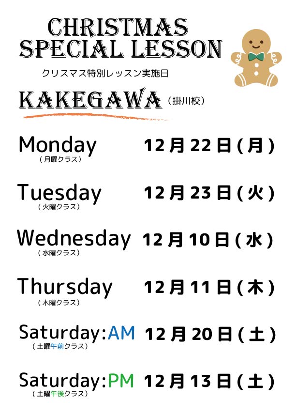 当日はゲームやアクティビティを中心に特別レッスンを実施させていただきます。