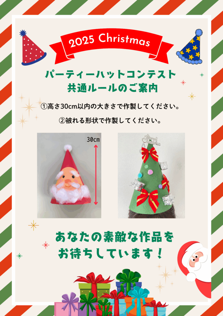 今年はクリスマスパーティーハットコンテストを実施します!!