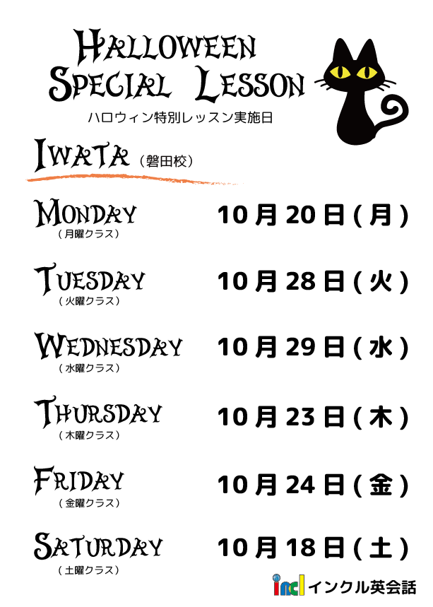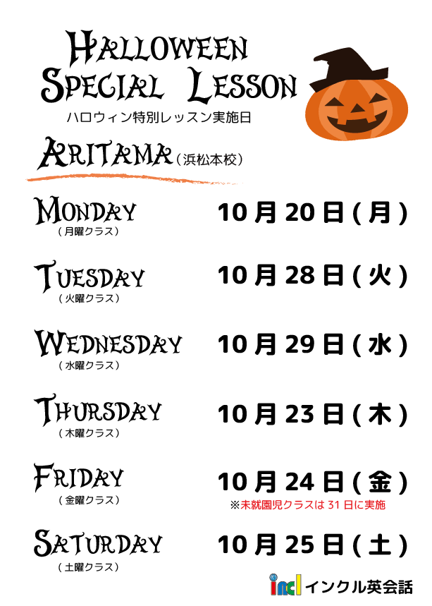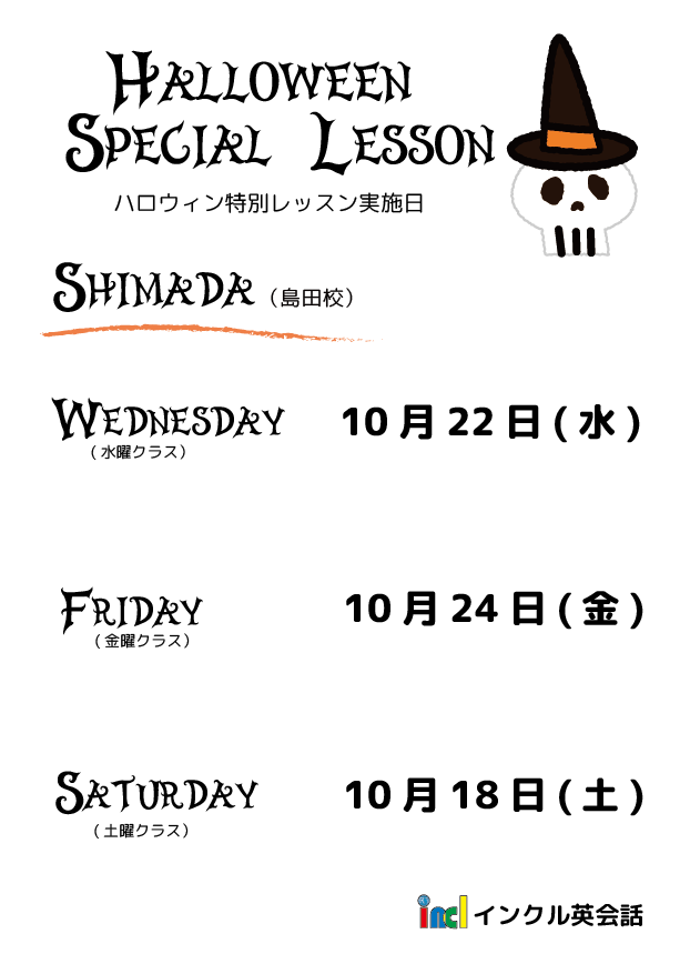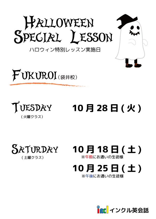 インクルでは、今年もハロウィン特別レッスンを実施します。